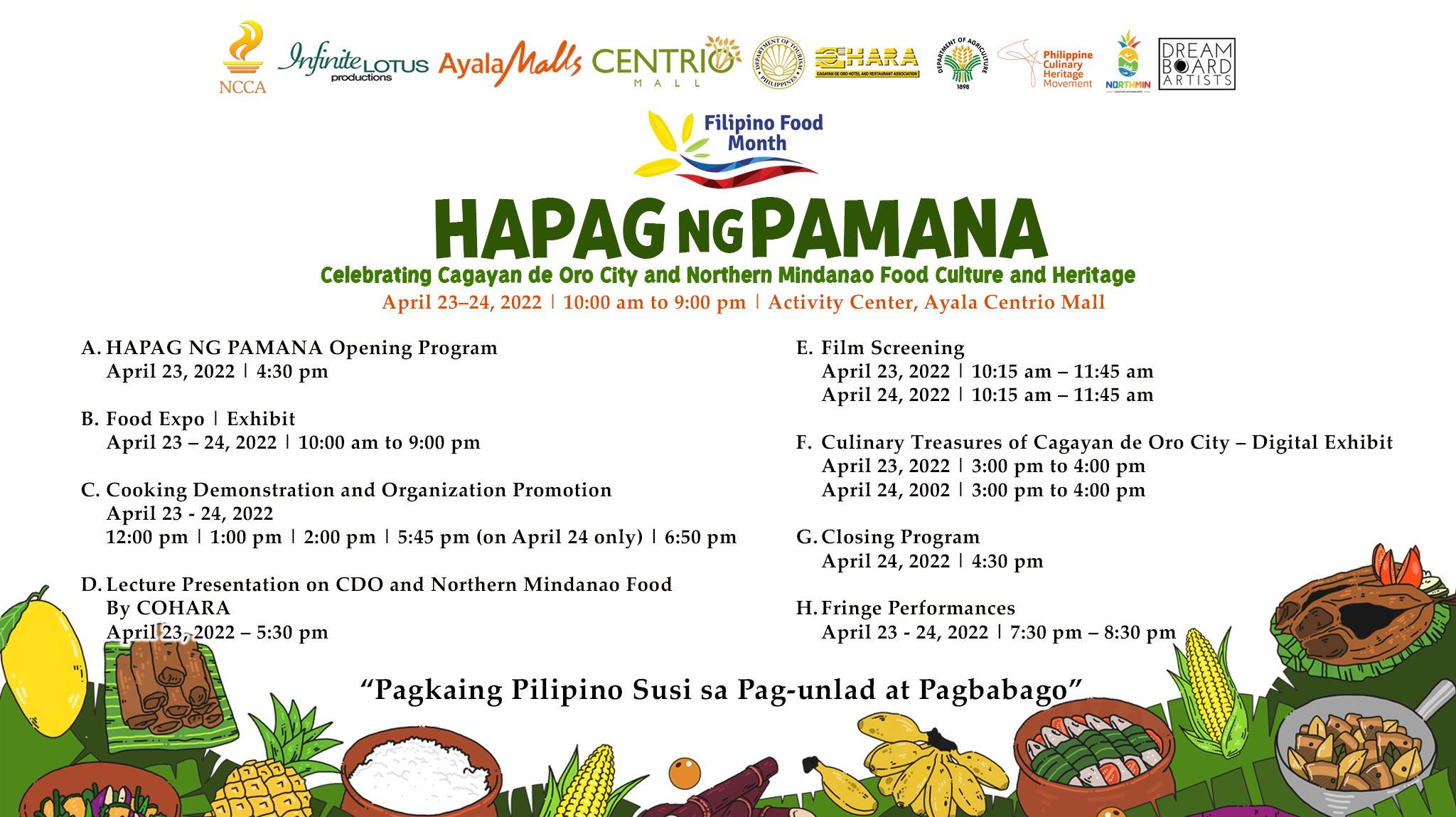 In partnership with APOO, Oro TIPC, and the City Government of Cagayan de Oro, weโre proud to bring you the ๐๐ถ๐ป๐ฎ๐บ๐ฎ ๐๐ถ๐ฒ๐๐๐ฎ ๐๐ผ๐ผ๐ฑ ๐๐ฎ๐๐ฎ๐ฎ๐ฟ! Get ready to feast with these amazing local MSMEs: CdeO Integrated Farm Pagmaya...