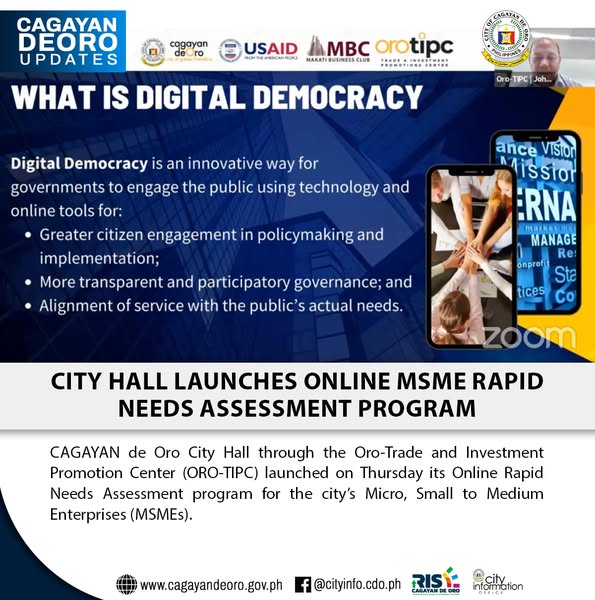 Cagayan de Oro City Hall through the Oro-Trade and Investment Promotion Center (ORO-TIPC) launched on Thursday its Online Rapid Needs Assessment program for the city’s Micro, Small to Medium Enterprises (MSMEs).
